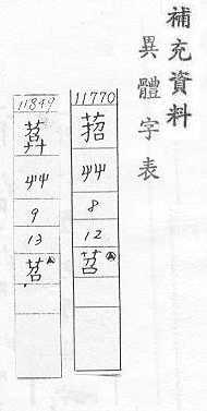 - 艹,部外笔画:5,总笔画:8