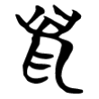 ,以鼠之正面張口露齒、毛茸茸之身以及尾巴呈現。篆文