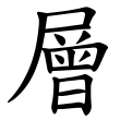 此字始見於篆文。在六書中屬於形聲。《說文》:「層,重屋也。从尸、曾聲。」段注:「引伸為凡重疊之偁,古亦假增為之。」大陸規範字改從云,失卻聲符。