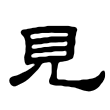 最合甲文第二例。字經隸書,所從之人變作「儿」,而儿、人本為一字,音、義全同,則其上承篆文之形應無疑義。楷書沿之,無所改易。以上諸形,都由目、儿二字構成,又和目、儿二字沒聲音關係,所以在六書中屬於異文會意。