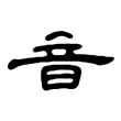 自金文至楷書,除戰國文字第二例以直豎代替一橫外,餘都一致。言,此作言語解;一,是個不成文的虛象。在言字的「口」中加一橫,是表示有節奏的聲音,和「言」的意思有所不同。言之形構為形聲,屬合體的字。因此,當言加虛象而成「音」,又和言沒聲音關係,所以在六書中屬於會意附加虛象。
