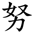 此字晚出,始見於楷書。從力、奴聲。在六書中屬於形聲。