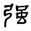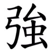 ,籀文強,从䖵、从彊。」蚚為蠅類小蟲。本義為蠅類蟲名,今已不用,而借為「彊」字。《說文‧弓部》:「彊,弓有力也。从弓、畺聲。」本義為牢固的弓,須用強力才能拉開。《說文‧力部》:「勥,迫也。从力、強聲。?,古文從彊。」段注:「彊者,以力相迫也。凡云『勉強』者,當用此字。」「強」、「彊」、「?」三字。在六書中皆屬於形聲。