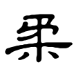 」之省形。篆文則改從木、矛聲。「矛」為武器,引申也有調整、治理的意思,故為示義的聲符。隸書、楷書則為篆文隸定之形體。在六書中,戰國文字屬於異文會意,篆文以下則屬於形聲兼會意。