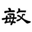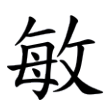 甲骨文字形從又、每聲。從又,指手部動作;每聲,聲兼義,每字本義為頭髮上插著髮飾的盛裝美女,此指女子而言。從又、每聲,表示女子做事動作敏捷。金文承甲骨文字形而來。篆文改從又為從攴,字義相通。隸書、楷書承篆文字形而來。在六書中屬於形聲兼會意。