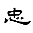 從金文、戰國文字、篆文、隸書到楷書,忠字都是從心、中聲。從心,表示內心的狀態;中聲,表示音讀,同時也說明忠為心中之誠敬,盡己之謂忠。六書中屬於形聲兼會意。
