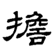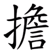 此字晚出,始見於隸書。隸書從手、詹聲。楷書同。從「手」為義符,表示是手部的動作;從「詹」為聲符,沒有兼義功能,依《說文》,「詹」的本義為「多言」,這和「擔」義沒有關係。不過,如果把「詹」聲看成是「冘」聲的假借,那麼就可以兼義了。「冘」的甲骨文作「