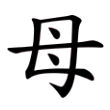 ,由「女」加兩點而成。女,在此表女性,屬象形;兩點是用來像乳房的,以彰顯女性的特徵。二者相合,正可表現母親的意思。金文二例,承自甲文,唯其第二例,只是女子增一髮簪而已,無損其音、義。戰國文字第一例,承自甲、金文之形,第二例則已隸化,頗失其形,卻是隸書、楷書之形所本。篆文作