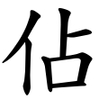 此字晚出,始見於楷書。楷書由「人」、「占」二字構成。從人,示人力所為;從占,聲符,注明音讀。表示強力據有之義。在六書中屬於形聲。