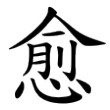 從金文到楷書,愈的形構皆係從心、俞聲。以心表示與心境相關;俞聲表示音讀。在六書中屬於形聲。楷定作愈,大陸規範字作「