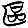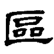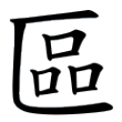 像置物架,從品像眾多器物之形,與「器」字從㗊表示眾多器物相同,並非表示眾人之口的品字。戰國文字則像某一個存放器物的區域。篆文、隸書、楷書字形從匸,匸的本義為遮掩躲藏,表示收藏器物的地方;從品,表示收藏的對象為眾多的器皿。在六書中屬於異文會意。