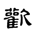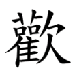 此字始見於篆文。篆文、隸書及楷書字形皆為從欠、雚聲。「欠」為張口氣散,作為形符,表示義與口有關;「雚」為小雀,於此作為不示義的聲符,表示音讀。在六書中屬於形聲。大陸通行規範字作「欢」。
