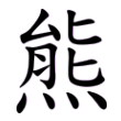 甲骨文像猛獸的樣子,有大嘴、尖爪、巨足掌。篆文改為從能、炎省聲。從「能」,指能為熊的一種;「炎」表示音讀。隸書與楷書都從篆文來。在六書中屬於形聲。自「能」假借為才幹、強壯的意思,如「能幹」、「能耐」,後被借義所專用,而以「熊」指動物本身。