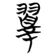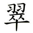 此字始見於戰國文字。《說文‧羽部》:「青羽雀也,出鬱林。从羽、卒聲。」本義是青綠色的翠鳥。篆文從羽,表示鳥類;從卒,此是不示義的聲符,表示音讀。在六書中屬於形聲。「翡翠」的「翠」,戰國文字有兩種構形,一種從鳥、辠聲;另一種從羽、辠聲;因「羽」、「鳥」都指禽鳥之類;「卒」、「辠」(辠字所從的「自」形,字形稍見訛變,有的寫成「首」形,有的寫成「目」形),聲近可相替換,可視為「翠」之異體,在六書中也屬於形聲。教育部楷書承篆文隸定,以「翠」為正字。