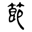 金文、戰國文字的形體雖然不完全一致,但是可以看出都是上像「竹」,下像「即」。篆文從竹、即聲。從「竹」,表示是竹的部分;「即」表示音讀。隸書、楷書都從篆文來。隸書另有一形變為草頭。在六書中屬於形聲。