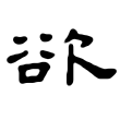 此字始見於戰國文字。戰國文字至楷書字形皆為從欠、谷聲。「欠」為張口氣散,引申可以指人,作為形符,表示義與人有關;「谷」為兩山之間流水的通道,引申而為低地,可注入事物,故於此作為示義的聲符,表示音讀。在六書中屬於形聲兼會意。