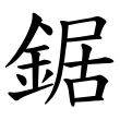 金文、篆文及楷書字形皆從金、居聲。「金」為金粒,作為形符,表示義與金屬有關;「居」為蹲,於此作為不示義的聲符,表示音讀。在六書中屬於形聲。大陸通行規範字作「锯」。