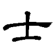 像土地之形。從金文至楷書,士之構形,都是從十,一像土地之形。十作「甲札」解,一像地。合而成士,可表甲士護土之義(《文字析義》,P.581)。案「十」像縫在戰衣上的甲片,只是省略它的邊緣,有獨立的形、音、義,即今之「甲」字,屬象形。一,像土地,沒獨立的形、音、義,可會以甲士護土之義。戰國文字第二例