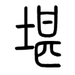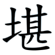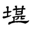 《說文‧土部》:「堪,地突也。从土、甚聲。」從土,表示與地形相關;段注指出「甚」有「殊」、「尤」之義,從甚,表示音讀,兼表「特出」之意思,本義指地面突起的地方。在六書中屬於形聲兼會意。