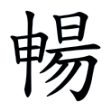 此字晚出,始見於楷書,從申、昜聲,在六書中屬於形聲。篆文作畼。《說文》:「畼,不生也。从田、昜聲。」段注:「今之暢葢即此字之隸變。《詩》:『文茵暢轂。』傳曰:『暢轂,長轂也。』〈月令〉:『命之曰暢月。』注曰:『暢,充也。』葢皆義之相反而相生者也。」