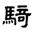 ,由「馬」、「奇」二字構成。從馬,示所騎牲口之義。從奇,聲符,注明音讀。所從「奇」乃「㐄」之假借,而有跨馬之義(《文字析義》,P.98)。戰國文字承自金文,右體上端「大」形多所變易。篆文從馬、奇聲。隸書承自篆文,「大」變易作「
