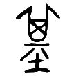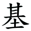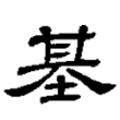 ,均從土、其聲。戰國文字從土、丌聲,丌上並增綴一短橫,作為羨符。篆文繼承金文。隸書則一承篆文,一承戰國文字。楷書則從篆文、隸書而來。《說文‧土部》:「基,牆始也。从土、其聲。」從土,表示與土地建物相關;其從丌聲,丌為下基,從其、從丌,皆表示音讀,兼表下基之義,本義為牆腳。在六書中都屬於形聲兼會意。
