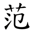 此字始見於篆文。篆文作從艸、氾聲。在六書中屬於形聲。《說文》:「范,艸也。从艸、氾聲。」氾,《說文》:「濫也」,有普遍、博大意,《論語》的「汎愛眾」,即假汎為氾。字與泛字不同。泛,《說文》:「浮也。」又《說文》另有「笵」字,為範圍的本字,與「范」字源頭亦不同。范字的隸、楷字形均承篆文而來。