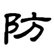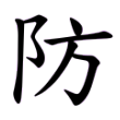 此字始見於篆文。篆文從阜、方聲。在六書中屬於形聲。《說文》:「防,堤也。」或體增從土。段注:「防者,豬旁隄也。引申為凡備禦之偁。防之俗作坊。」隸、楷以後字形均承篆文不變。