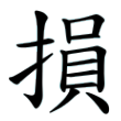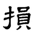 此字始見於篆文。篆文從手、員聲。隸書、楷書同。字從「手」為義符,表示是手部的動作;從「員」為聲符,沒有兼義功能。依《說文》,「員」字本義為「物數也」,古文字學家則以為「員」是「圓」的初文,無論那一說都與「損」義無關。在六書中屬於形聲。