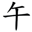 甲骨文、金文字形都像兩頭粗大而中間纖細的舂米棒槌。金文午字又寫作