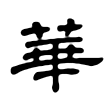 始見金文。字本像花朵盛開形,戰國文字增從艸。篆文兼有?、華二字。《說文》:「?,艸木華也。从?、亏聲。」段注:「此與下文華音義皆同。華,榮也。〈釋艸〉曰:『華,荂也。華、荂,榮也。』今字花行而?廢矣。」字或體從艸、從夸。《說文》:「華,榮也。从艸?。」段注:「按,〈釋艸〉曰:『蕍、芛、葟、華,榮。』渾言之也。又曰:『木謂之華,艸謂之榮。榮而實者謂之秀,榮而不實者謂之英。』析言之也。」隸書承篆文,兼有?、華二形。楷書字形則承隸書而來。大陸規範字作「