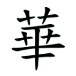 始見金文。字本像花朵盛開形,戰國文字增從艸。篆文兼有?、華二字。《說文》:「?,艸木華也。从?、亏聲。」段注:「此與下文華音義皆同。華,榮也。〈釋艸〉曰:『華,荂也。華、荂,榮也。』今字花行而?廢矣。」字或體從艸、從夸。《說文》:「華,榮也。从艸?。」段注:「按,〈釋艸〉曰:『蕍、芛、葟、華,榮。』渾言之也。又曰:『木謂之華,艸謂之榮。榮而實者謂之秀,榮而不實者謂之英。』析言之也。」隸書承篆文,兼有?、華二形。楷書字形則承隸書而來。大陸規範字作「华」。