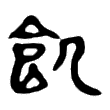 此字始見於戰國文字中的秦簡,用為飢餓意,但卻不見用於楚簡文字。字從食、几聲,篆文因承秦簡字形。《說文》:「飢,餓也。」段注:「與饑分別。葢本古訓,諸書通用者多有,轉寫錯亂者亦有之。」篆文中飢、饑分為二字,《說文》:「饑,穀不熟為饑。」但隸楷字形均因承篆文不變。在六書中屬於形聲。