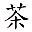此字晚出,始見於楷書,見《廣韻》。《集韻‧麻韻》:「荼、?、茶,茗也。」唐‧陸羽有《茶經》。字應即荼字重文。《說文》:「荼,苦荼也。从艸、余聲。」徐鉉注:「此即今之茶字。」唐以後始減一橫畫作茶。字本為木之花葉,可供沖汁作飲,其本義為「茗」。
