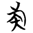 甲骨文字形從㫃、從矢。㫃為旗幟飄揚的樣子,可聚集眾人;矢為箭,引申可為軍隊。軍隊必有旗幟,故二者相合正表示軍事活動之意。金文構形與甲骨文相同,戰國楚系文字或將「㫃」(