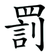 字始見西周金文,〈大盂鼎〉有「罰訟」一詞,字從刀、從网、從言。在六書中屬於會意。戰國文字與金文同。篆文字形亦上溯金文。《說文》:「罰,辠之小者。从刀詈。未以刀有所賊,但持刀罵詈則應罰。」段注:「罰為犯法之小者,刑為罰罪之重者。五罰輕於五刑。」隸書字形訛网為罒,訛刀為寸。楷書字形則仍承篆文從刀。