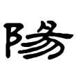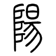 」,似用為地名。金文承甲文字形,字用作地名、人名,亦見陰、陽並稱,或某地某水之陽的用法。由〈農卣〉的「對陽王休」一句,見字亦借為揚。戰國秦簡亦多見陽字,亦有通用作揚。篆文字形承秦簡,從阜、昜聲。《說文》:「陽,高明也。」段注:「不言山南曰昜者,陰之解可錯見也。山南曰陽,故从阜。《毛傳》曰:『山東曰朝陽,山西曰夕陽。』」隸楷字形均承篆文而來。在六書中屬於形聲。大陸規範字作阳。