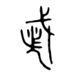 像人之散髮,以戈截取人頭,表示殺戮之意,為「殺」之初文。春秋金文在散髮下添加「人」形,如齊器〈莒叔之仲子平鐘〉作「