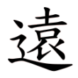 甲骨文從彳、袁聲;金文從彳(或辵)、袁聲,戰國文字、篆文、隸書、楷書都從辵、袁聲。字從「辵」或「彳」為義符,表示與行動有關(距離遠就要走很久);從「袁」為聲符,不兼義,依《說文》,「袁」字本義為「長衣貌」,此義與「遠」無關,因此不兼義。在六書中屬於形聲。