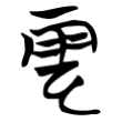 自甲骨文至戰國文字第一例,以及《說文》二古文,都像天上之雲,屬象形。由於云被借為「說」,就另增「雨」為形符,以示區別,戰國文字二、三例即是,構形為從雨、云聲。篆文
