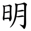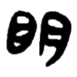 甲骨文字從日月,示日月並出,在六書中屬於異文會意。有明亮、日晝的意思。字另有從囧、從月,取月光射入窗內意,囧亦聲。金文分別從日和從囧,字形承接甲文而來,二者並存。戰國文字明字從日有訛作目。篆文字仍從囧,《說文》古文則從日。隸書字形亦有分從囧和從日。字至楷書則固定從日。《說文》:「明,照也。」