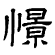 此字始見於篆文。篆文字形從心,以心表示與心境相關;景聲,表示音讀。隸變作