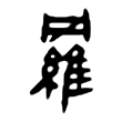 始見於甲骨文,從網捕隹鳥。金文字已增從糸。戰國文字字形已固定從网、從維。篆文始見用為鳥網。《說文》:「羅,以絲罟鳥也。从网从維。古者芒氏初作羅。」段注:「〈釋器〉:『鳥罟謂之羅。』〈王風〉傳曰:『鳥網為羅。』」隸楷字形均承篆文,但從網部件已訛作罒。大陸規範字改從夕,字形本義盡失。
