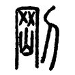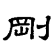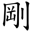 《說文‧刀部》:「剛,彊斷(強力折斷)也。从刀、剛聲。」甲骨文字形從刀斷网(網的初文),表示「剛強」之意,六書屬於異文會意。网或兼表音讀。西周金文、戰國文字、隸書、楷書,网都增添「山」形,形變為岡,皆從刀、岡聲,在六書中屬於形聲。臺灣標準字作「剛」,大陸規範字作「刚」,「岡」改為「冈」,是偏旁類推。