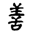 ,篆文善從言。」從誩,本為競相為言;從羊,表示吉羊,所言皆吉,意指吉祥之言辭。在六書中屬於異文會意。