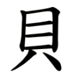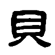 ,像貝殼張開的樣子,外像貝殼開張的邊緣,內像殼上的紋路,正像貝殼張開的樣子。金文三例,承自甲文之形,只是第三例多了穿貝的垂繩。戰國文字三例,都像穿貝垂繩的樣子,以第一例垂繩為多,然不影響其音、義。篆文承之戰國文字第三例,顯而易見。隸書、楷書沿之而不變。以上諸形,都據具體的實象造字。在六書中屬於象形。