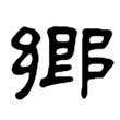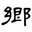 甲骨文字形像兩人張口相向對坐,就㿝(簋字的初文)以進食,為宴「饗」字的初文。鄉字引申為趨向,而分化出專屬的嚮字;假借為基層行政單位的鄉里,而轉注為饗字;引申為鄉老,而分化出專屬的卿字。金文承甲骨文字形而來。戰國文字「兩人張口相向對坐」訛變為從