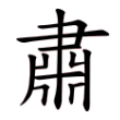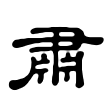 字形始見於金文。字從聿在?上,會處事如臨?,有肅敬義。周金文見用為人名,亦已用為莊敬義,如「肅哲」、「肅肅」、「肅成」、「肅慕」等美德用詞。戰國《包山楚簡》肅字有訛改從尹、從泉,意與從聿、從?相當。篆文形則仍承金文,從聿、從?。《說文》:「肅,持事振敬也。从聿在?上,戰戰兢兢也。」古文從心、從阝。段注:「《廣韻》:『恭也、敬也、戒也、進也、疾也。』按,訓進者,羞之假借。訓疾者,速之假借。」隸楷以後字形均承篆文而來。在六書中屬於異文會意。大陸規範字作「肃」。