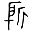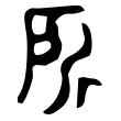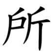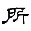 金文、戰國文字皆從戶、從斤。斤像斧斤之形,用以伐木;戶像單扇門戶之形。戰國文字,或在增添斜筆,近似「勿」形;或在「戶」下增添一短橫,為裝飾之羨符。至秦文字才定形從「戶」,與《說文》篆文相同。《說文‧斤部》:「所,伐木聲也。从斤、戶聲。」本義為伐木的聲音。從斤,表示伐木之工具;從戶,表示音讀,模擬伐木的聲音,是不示義的聲符。在六書中屬於形聲。