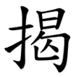 此字始見於篆文。篆文從手、曷聲。楷書同。字從「手」為義符,表示是手部的動作;從「曷」為聲符,不兼義,《說文》以為「曷」字本義為「何也」,古文字學家或以為是「被割下來的果實」,無論依那一說都與「揭」義無關。在六書中屬於形聲。